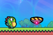 Der kleine Dino soll die bunten Blöcke einsammeln, aber das geht nur, wenn er die selbe Farbe annimmt wie die Blöcke. Drücke die angegebenen Tasten (Y statt Z für Grün) um wie ein Chamäleon die Farbe zu wechseln und hüpfe dann auf das Raumschiff.